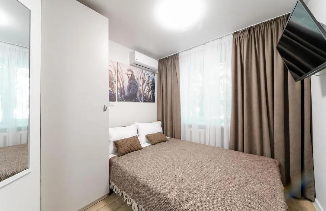 This apartment lies in the Svyatoshynskyj district, 7 km from the vivid yellow 19th - century St Volodymyr's Cathedral. Подобово Теплі Апартаменти Myfreedom З Усіма Зручностями Біля Інституту Шалімова is 15 minutes' drive from the Golden Gate and Igor Sikorsky Kyiv International airport is 15 minutes’ drive away.